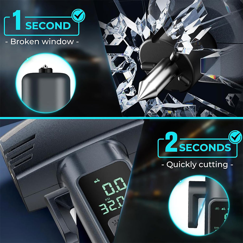 مزود بـ قاطع حزام أمان و كاسر زجاج مدمجين، لتكون مستعدًا لأي حالة طارئة أثناء القيادة. 🚨