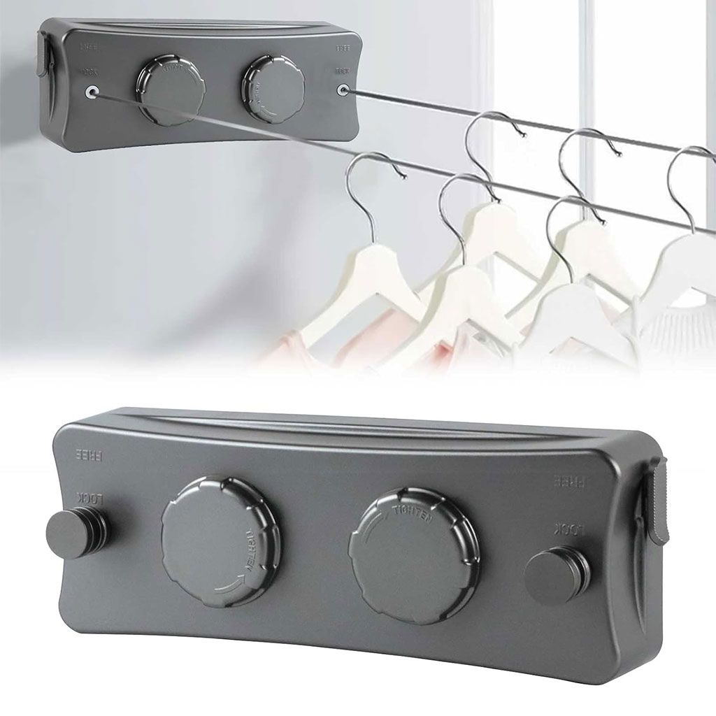 Double Corde à Linge Rétractable 2 x 5,1m en Acier Inoxydable Capacité 40KG – حبل غسيل مزدوج قابل للسحب