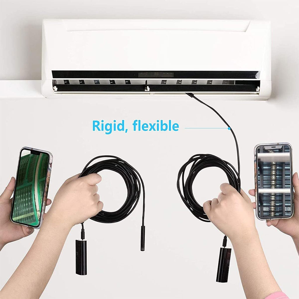 يعمل هذا المنظار اللاسلكي بتقنية WiFi مع أنظمة Android / iOS / iPad / Windows. مزود بكابل شبه صلب قابل للانحناء، يمكنه الوصول بسهولة إلى أضيق الزوايا داخل منزلك أو سيارتك أو الأجهزة الإلكترونية 🧰.