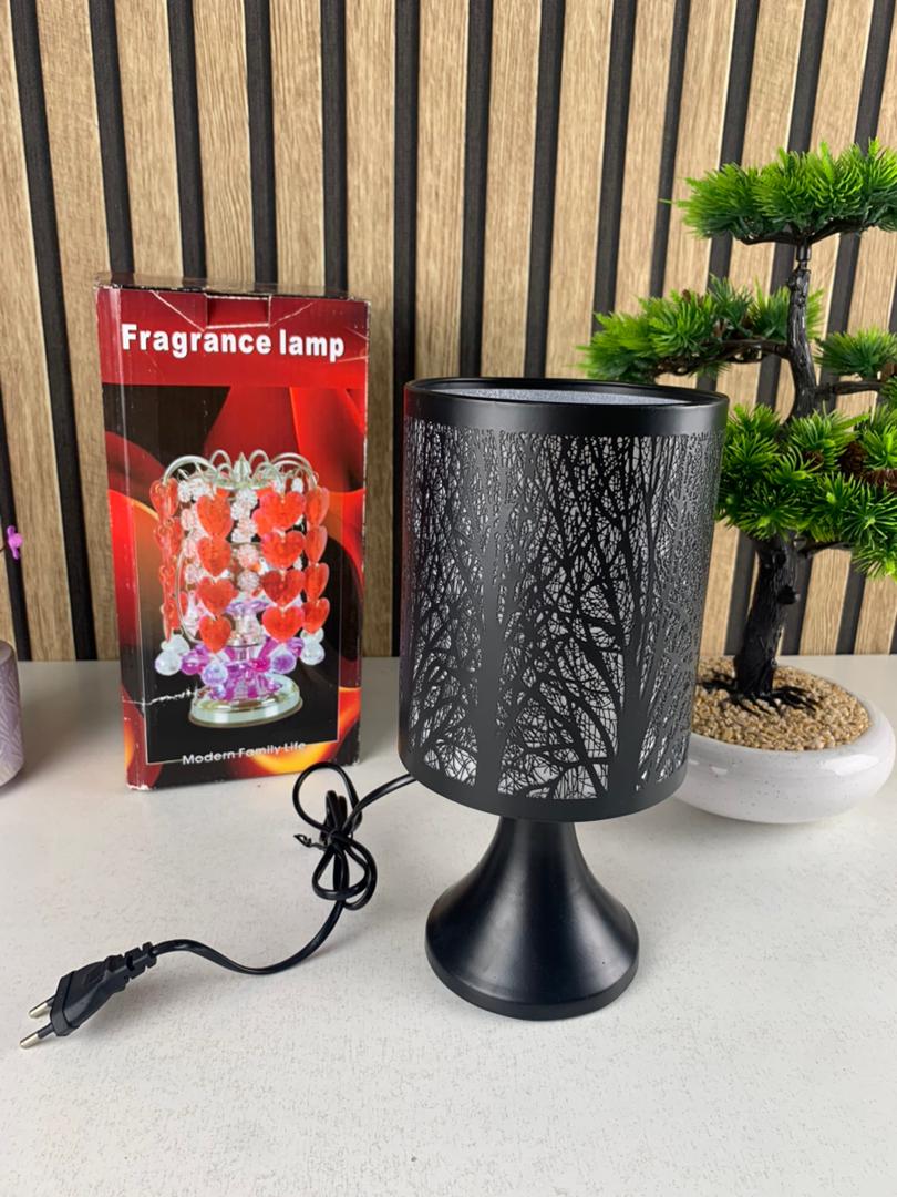 أضف لمسة شاعرية إلى ديكور منزلك مع هذه المصباحة الزخرفية الأنيقة، المزودة بظل أسود منقوش برسومات الفراشات والشجرة.