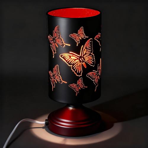 أضف لمسة شاعرية إلى ديكور منزلك مع هذه المصباحة الزخرفية الأنيقة، المزودة بظلّ أسود منقوش برسومات فراشات مضيئة 🦋.