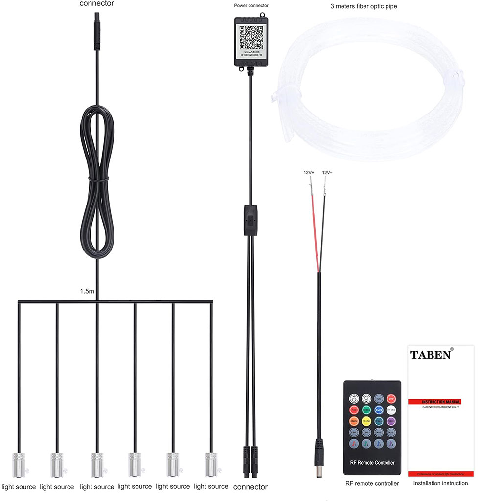 Lumière Ambiante RGB Pour l’Intérieur de Voiture avec Télécommande + APP Contrôle