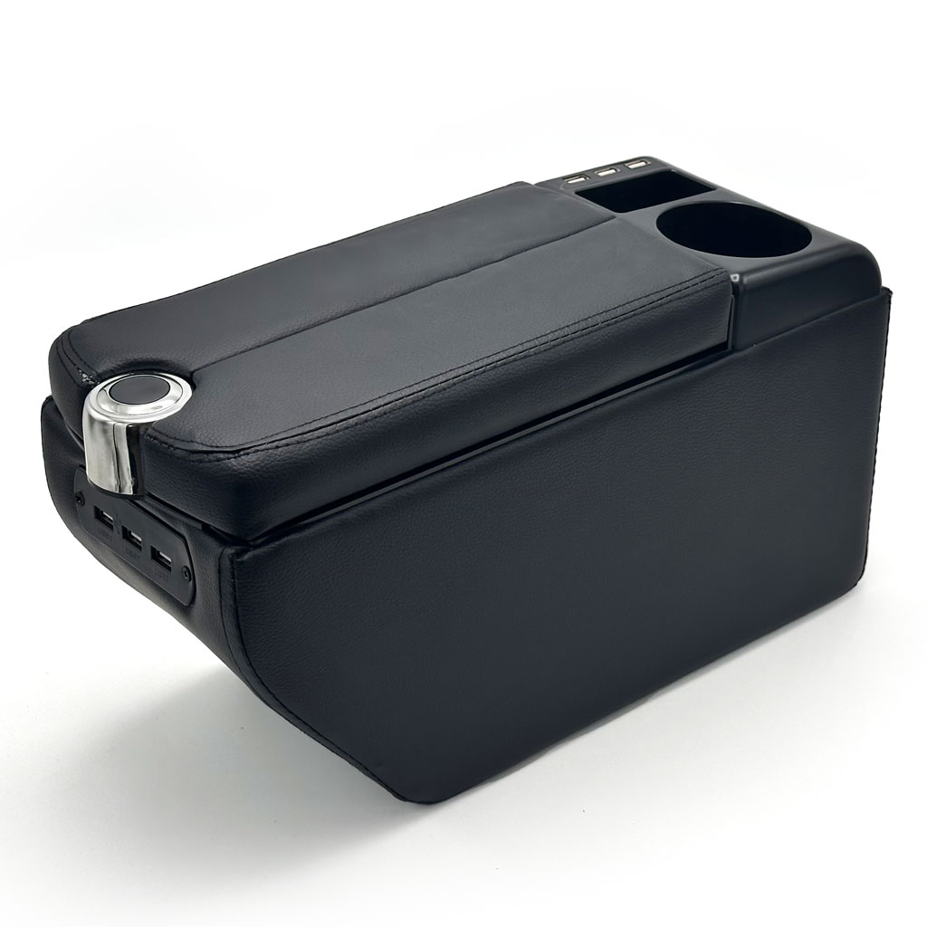 يتميز بمسند ذراع مبطّن بالجلد الصناعي الأسود، يمنحك راحة إضافية أثناء القيادة، ويضيف حلول تخزين عملية تحافظ على ترتيب وأناقة سيارتك.