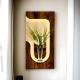 اللوحة تأتي بشكل منحني أنيق مع مزهرية زجاجية شفافة تحتوي على نباتات خضراء وزهور بيضاء تضفي حياةً وجمالاً طبيعياً على الجدار.