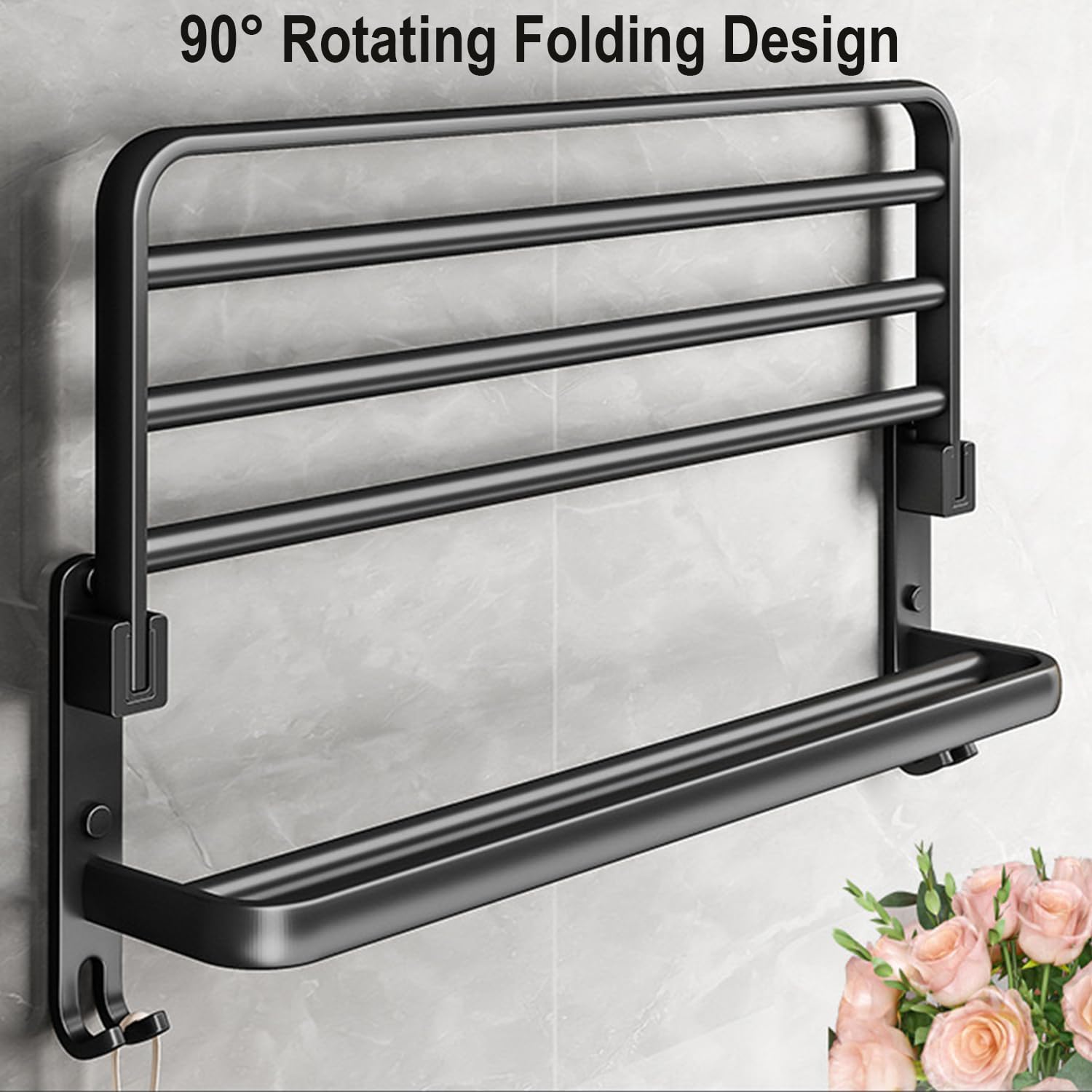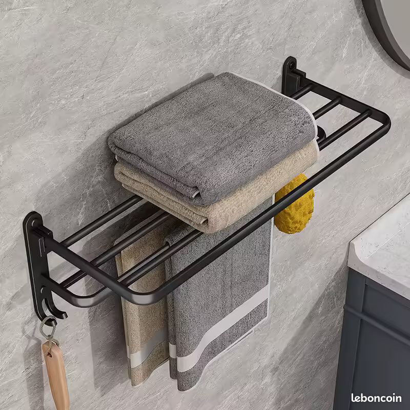 Porte-serviette mural pliable en aluminium Noir – خفيف، متين، ويعطي لمسة عصرية لحمامك