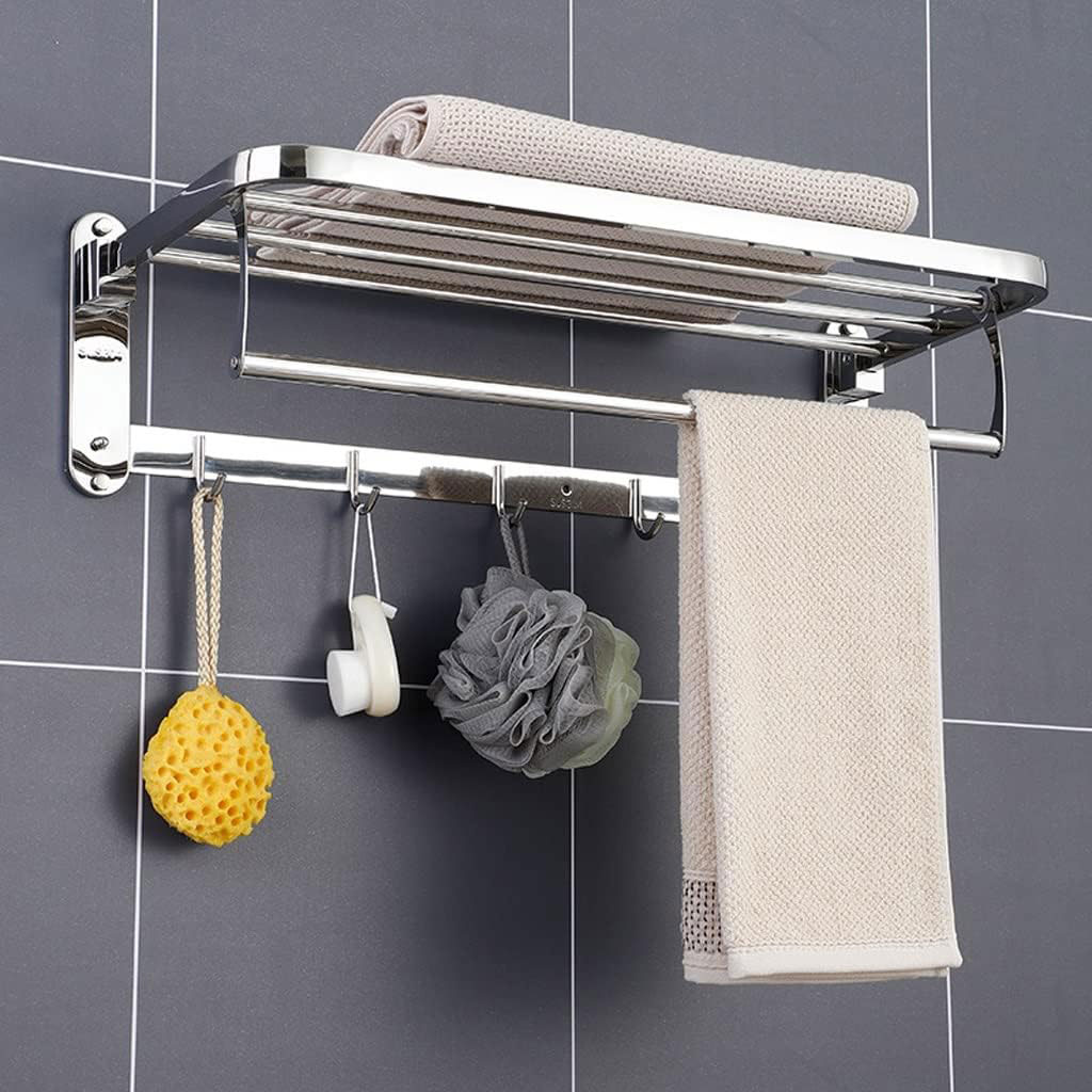 Porte-serviettes mural pliable en acier inoxydable avec crochets GM – علاقة مناشف قابلة للطي