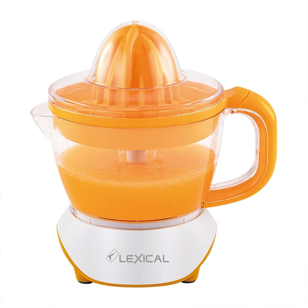 ضع نصف الفاكهة على المخروط واضغط ببساطة لبدء العصر، ثم ارفع يدك للتوقف.
