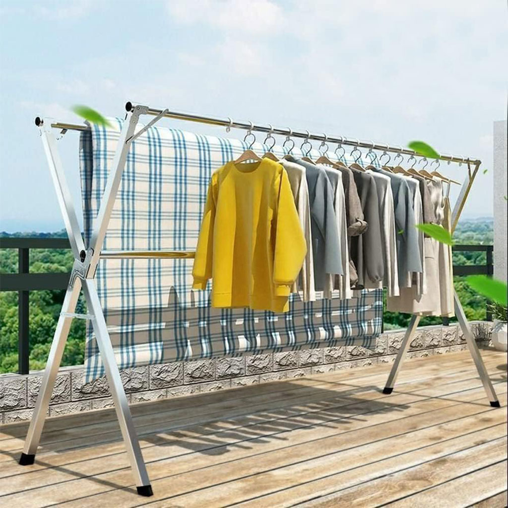 تمت إضافة قضيب دعم في المنتصف لزيادة الثبات أثناء تعليق الملابس، حتى في الأجواء العاصفة.