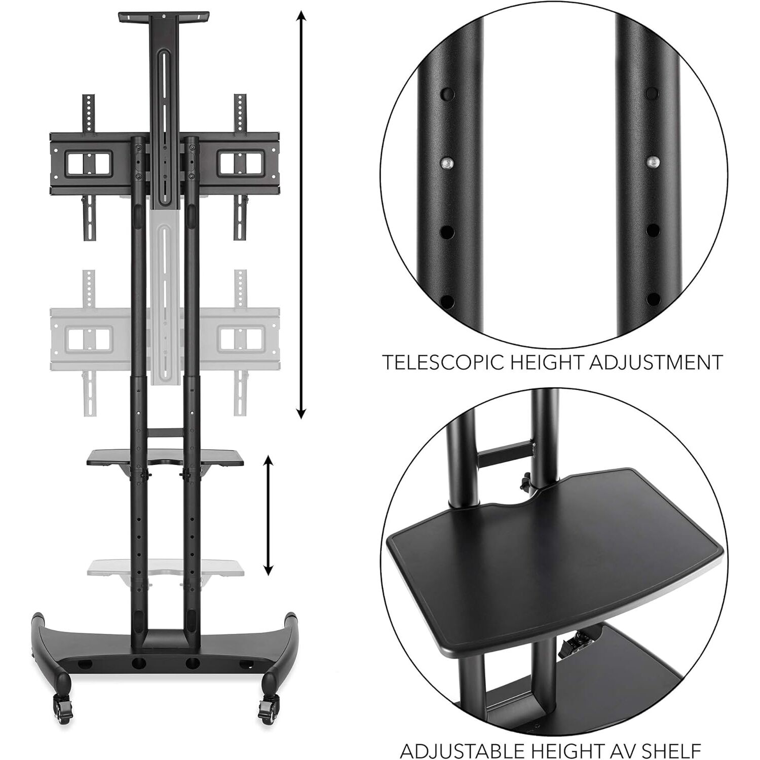 Réglabilité : De nombreux chariots TV sont réglables en hauteur et en inclinaison, permettant aux utilisateurs de personnaliser l'angle de vision et la hauteur du téléviseur pour un confort visuel optimal. Cette variabilité permet de positionner l'écran à la hauteur souhaitée pour différents publics.